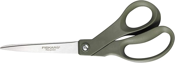 Fiskars Ciseaux universels Recyclés, Longueur totale: 21 cm, Pour droitiers et gauchers, Lames en acier inoxydable/Poignées en plastique 100 % recyclé, Vert foncé, 1001302