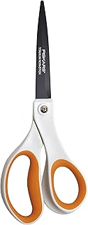 Fiskars Ciseaux antiadhésifs universels, Longueur totale: 21 cm, Revêtement titane/Lames en acier inoxydable/Poignées en plastique, Blanc/Orange, 1004721