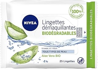 NIVEA Lingettes Démaquillantes Biodégradables (1 x 25 ST), Lingettes douces & délicates pour tous types de peau, Lingettes enrichies en Huile d'Argan BIO & Aloe Vera BIO