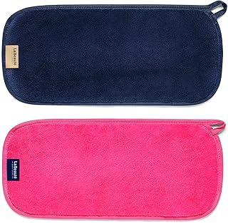 LaBeauté Serviettes microfibres démaquillantes visage (2 pièces) – Nettoyantes et démaquillantes – Lingettes démaquillantes lavables et réutilisables (40 x 18 cm, bleu marine et rose), grand