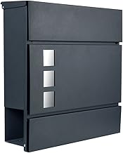 Boîte aux lettres murale en acier inoxydable RAL 7016 - Gris anthracite - Avec porte-journaux, Tôle d'acier, Anthrazitgrau Ral 7016, ca. 37cm x 37cm x 10,5cm