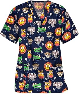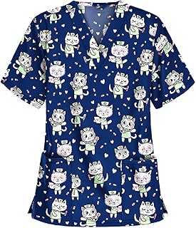 SJJY Blouse Medicale Femme,Hauts pour Femmes Hauts à Col en V Manches Courtes T-Shirt d'impression De Travail Haut DéContracté La Mode Chemisier Uniforme Manches Courtes Femmes Soin Col Imprimé