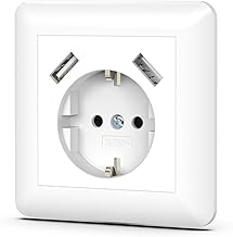 Urhome Prise Murale avec 2 Ports USB Prise de Courant Schuko encastrée - 1 pcs, Blanc