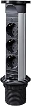 Elbe Inno Escamotable Prise de Table 3-Fois, Noir, métal, avec sécurité Enfants, Prise encastrée avec câble de raccordement de 1,5 m, Prise de Courant idéale pour Le Bureau, la Cuisine et l'atelier
