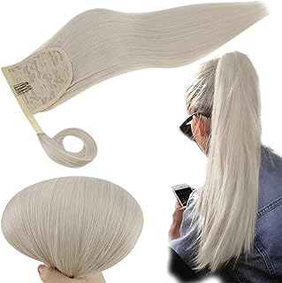 RUNATURE Extension de Queue de Cheval Enveloppante 16 Pouces 40cm Couleur 800 Blond Blanc 80g Wrap Around Extensions de Cheval Cheveux Humains